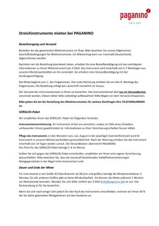 Bestellvorgang und Versand Bestellen Sie das gewünschte Mietinstrument im Shop. Bitte beachten Sie unsere Allgemeinen Geschäftsbedingungen AGB.