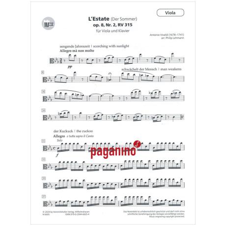 Ausgabe für Viola und Klavier mit vereinfachter Klavierbegleitung. Schwierigkeitsgrad 2: Begleitung sollte vor dem Unterricht angeschaut und vor dem Konzert geübt werden.