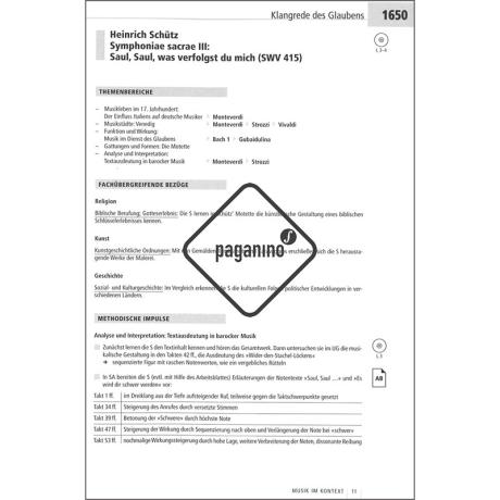 Musik im Kontext bringt mit innovativen Ansätzen für schülerzentriertes Arbeiten neue Ideen und Methoden in den Musikunterricht. Viele verschiedene Materialien und Textsorten ergeben in Musik im Kontext ein Gesamtbild und stellen das Werk, den Komponisten, die historischen Zusammenhänge und die aktuellen Strömungen in bildender Kunst, Literatur oder den Wissenschaften in Beziehung zueinander. Schülerinnen und Schüler können sich anhand der Materialien selbsttätig Zugänge zum Stoff erarbeiten. Der Lehrerband bietet ergänzende Sachinformationen zu jedem Kapitel sowie Anregungen für den Unterricht. Dazu gehören Ideen für die Stundengestaltung, methodische Hinweise, mögliche Fragestellungen, Erwartungshorizonte und eine Differenzierung nach verschiedenen Lernniveaus (z.B. zwischen Klassenverband und Leistungskurs). Zahlreiche Arbeitsblätter als Kopiervorlagen erleichtern die Vorbereitung und geben zusätzliche methodische Impulse.