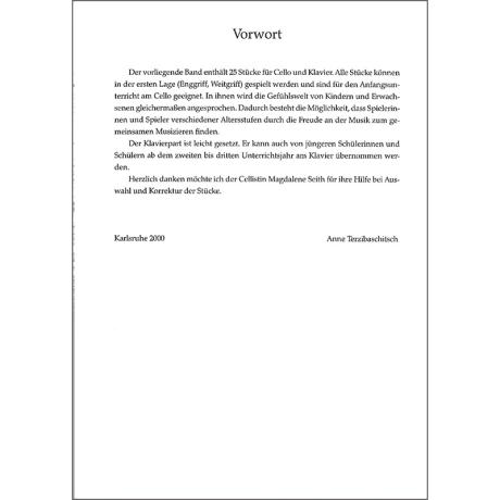 25 fantasievolle Stücke für Violoncello (1. Lage) und Klavier, geeignet für jede Altersstufe. Eine Bereicherung auch für den Instrumentalunterricht.