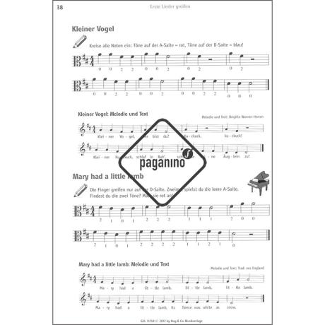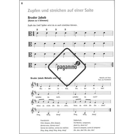 Das Schülerheft gibt es für Geige, Bratsche, Cello und Kontrabass.