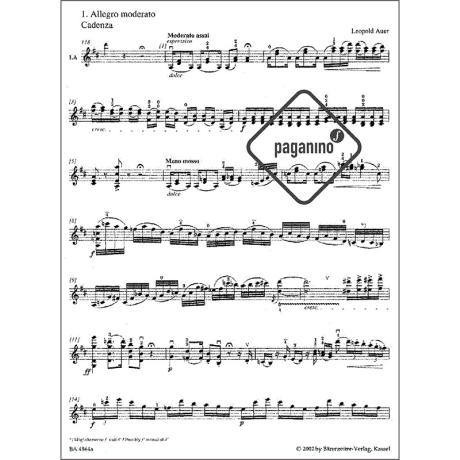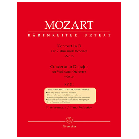 Klavierauszug mit Einzelstimme Violine solo, Urtext- und Interpretationsausgabe mit Kadenzen und Eingängen.