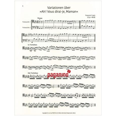 Mit diesen Variationen über die Melodie von »Morgen kommt der Weihnachtsmann« erweitert die Ponticello Edition ihr Weihnachtsprogramm um ein nahezu unbekanntes Werk des Cellisten, Komponisten und Pädagogen François Cupis (1732-1808), dessen »Méthode nouvelle et raisonée« es entnommen ist.