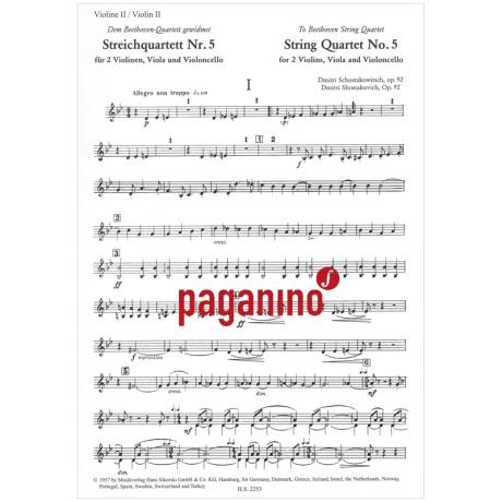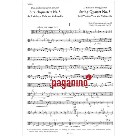 Schostakowitsch, D.: Streichquartett Nr. 5 Op. 92 B-Dur (1952)